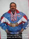 2016 Hall of Fame member Bill Clark is one of only several athletes in the world to be both an international medalist in Olympic Weightlifting and Powerlifting. In fact, Bill has set over 100 state, national, and world records in strength and power sports, including all three of the power lifts and is also a multi-state, national, and world champion in the same. Additionally, Bill is a martial arts and self-defense instructor, who has taught police officers and civilians alike. While in the profession of teaching, Mr. Clark was honored by police departments for his actions in both stopping a man from committing suicide by leaping from a bridge, and for subduing a violent felon until officers could arrest him! Bill conducts seminars, clinics, does motivational speaking, and performs feats of strength, such as bending steel bars, motorcycle parts and spikes, rolling up Paula Dean frying pans, tearing decks of cards, and sometimes does a world record one handed Deadlift with over 400 pounds (that's with an Olympic bar)! . Clark also holds the World Record for the Reverse Grip Curl in the 198 lb. weight class, with a 177-pound effort!
